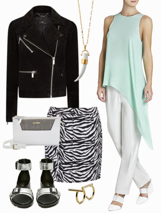 2. Wear a bodycon miniskirt with an asymmetrical top.When one side is more covered than the other, you subconsciously place the hem somewhere in the middle — like taking the average of the two lengths.